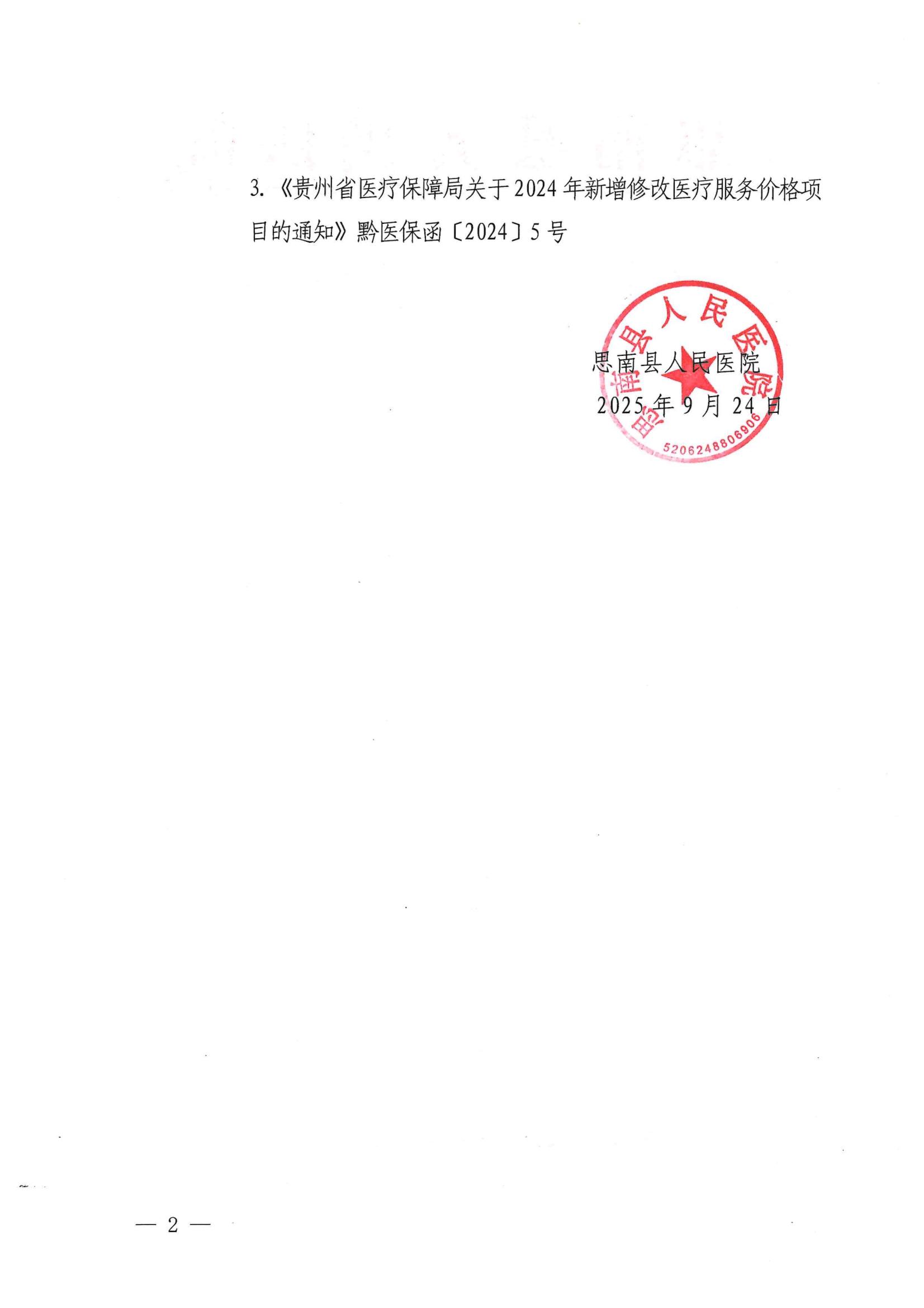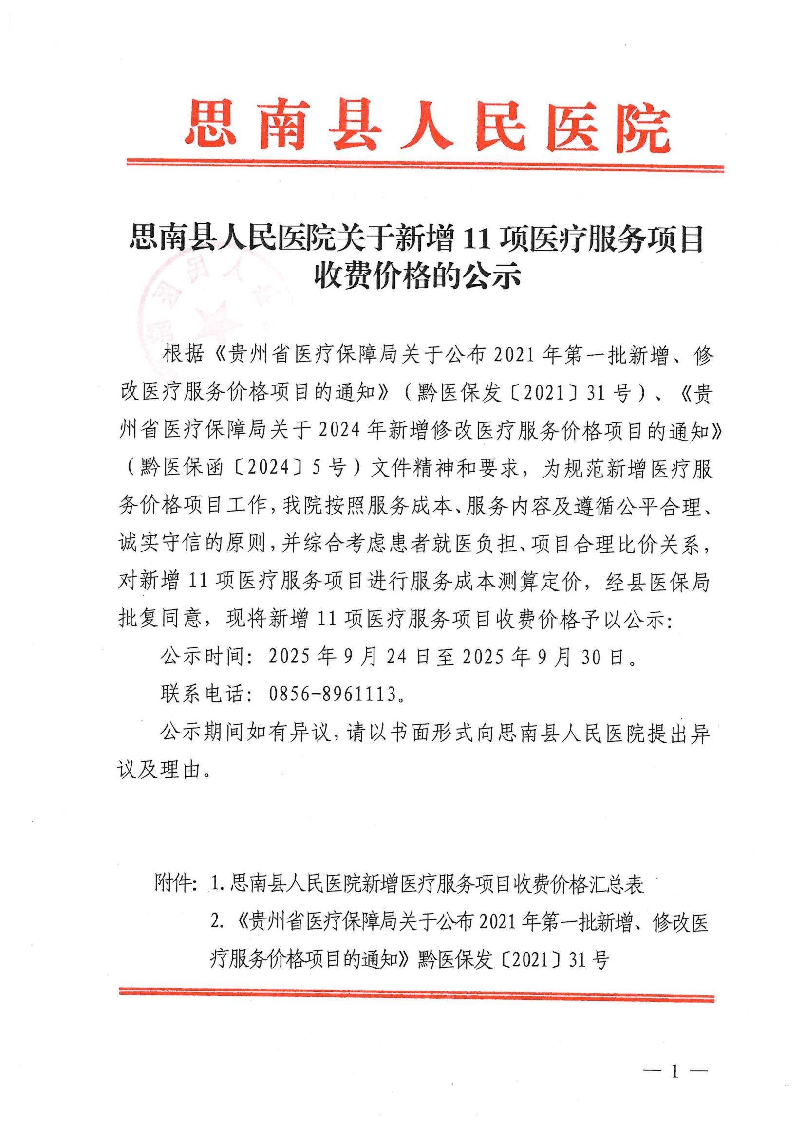 思南县人民医院新增11项医疗服务项目收费价格公示