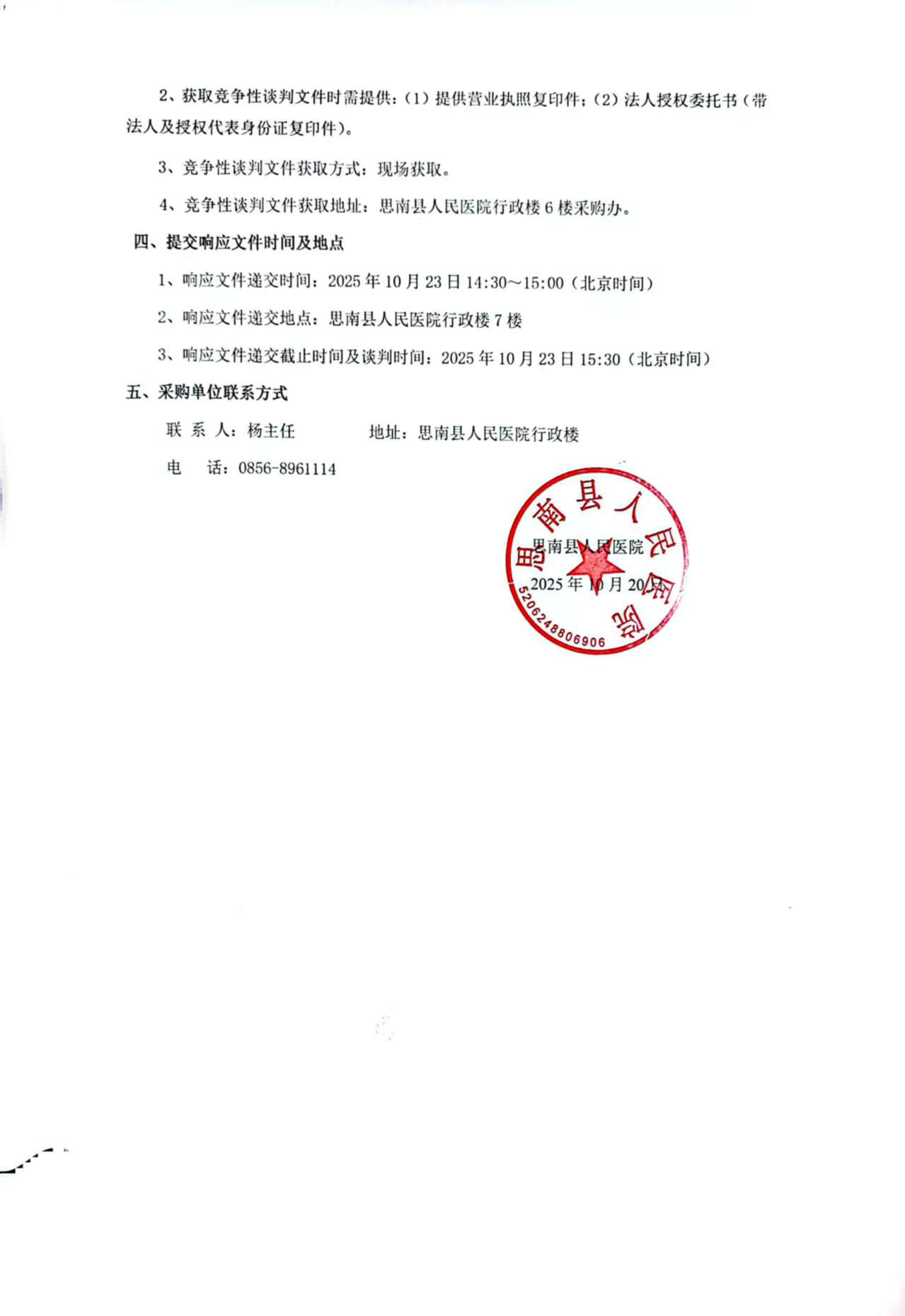 思南县人民医院行政综合楼消防整改项目竞争性谈判公告