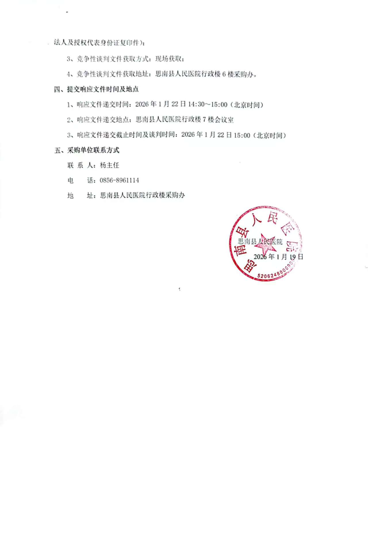 思南县人民医院白大衣采购项目竞争性谈判公告