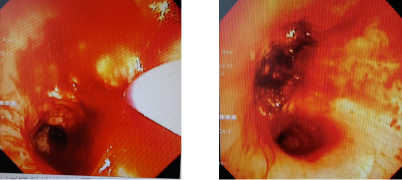 3.即时显效:术后右中间支气管通畅,右中叶及下叶支气管畅通。