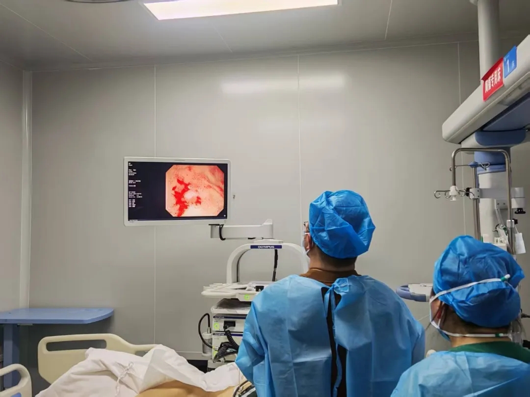 龙爷爷因突发呕血、黑便伴晕厥,被紧急送往思南县人民医院抢救室。入院时,患者血压低、心率加快,血红蛋白仅60g/L,出现休克表现,病情危重。消化内科团队立即启动消化道出血急诊救治绿色通道,快速评估病情并与家属沟通后,决定实施急诊内镜下止血治疗。