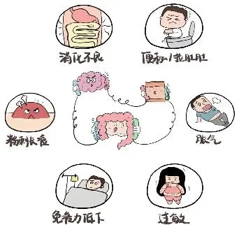 肠道出现 问题的常见表现:疼痛腹胀、食欲不佳、吃啥排啥、长期便秘、皮肤暗沉、口臭。